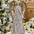 Standing at 20" tall, this resin angel exudes a peaceful aura and will bring a calming presence to any room. Perfect for any angel lover, this piece will add a touch of elegance and spirituality to your home.