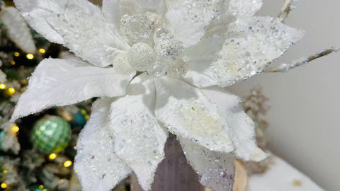 Each stem features a shimmering jeweled flower, choose between a poinsettia or magnolia, paired with snow-dusted birch branches. They look beautiful tucked into greenery, vases, or centerpieces and add that frosty, festive feel with almost no effort.