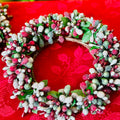 Each ring is packed with rich, metallic beads in burgundy, green, and silver. The sugared finish gives them a snowy sparkle that catches the light beautifully.