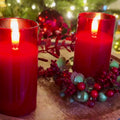 Set of 2 4" Petite Red Glass Flameless Pillar Candles for Just Jill