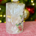 Each frosted Cylinder is adorned with a detailed Chickadee design with snowflake details scattered around the jar. With a built-in timer (6 hours on/18 hours off) and battery operation, they shine effortlessly every evening without any fuss.