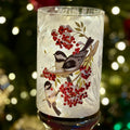 Frozen Glass Chickadee Hurricane w/ Lights for Just Jill