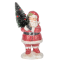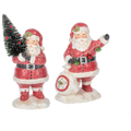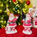 These cheerful Santas are ready to bring the holiday spirit! One’s carrying a snowy little tree, and the other’s hauling a sack of toys and ornaments. With a vintage look and just the right amount of sparkle, they’re perfect for adding a festive touch to your mantel, shelf, or holiday table.