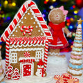 Crafted from durable clay dough with candy-inspired details, this adorable gingerbread-style house features peppermint swirls, frosted “icing” trim, and cookie-cutout accents that make it a true holiday showstopper.