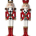 March some bold holiday spirit right into your home with this set of two red, black, and white nutcrackers! Dressed to impress in festive patterns and gold accents, these eye-catching characters bring a playful twist to classic Christmas decor.