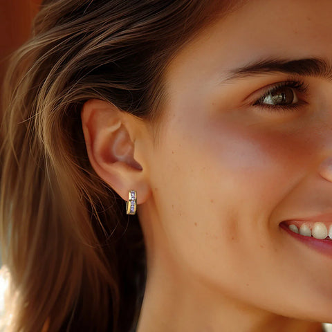 Add a dash of fresh-floral color to your everyday accessorizing with these versatile huggie hoop earrings! Featuring .60 ct. t.w. tanzanite rounds in polished 18kt yellow gold over sterling silver. Would look fabulous with your favorite denim jacket, chambray button-down or neutral-hued sweater set.