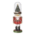 This charming nutcracker combines classic holiday nostalgia with a playful twist, featuring a beautifully detailed Christmas tree as his hat, where a tiny train circles around, creating a delightful scene for all ages.