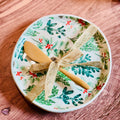 It features a charming ceramic plate with a holly design, a wooden spreader tied with ribbon, and a 2 oz jar of Southern Roots Sisters Cranberry Pepper Jam. This delicious jam is a delicious blend of fresh cranberries, a hint of orange, pure cane sugar, and a little kick of spicy pepper.