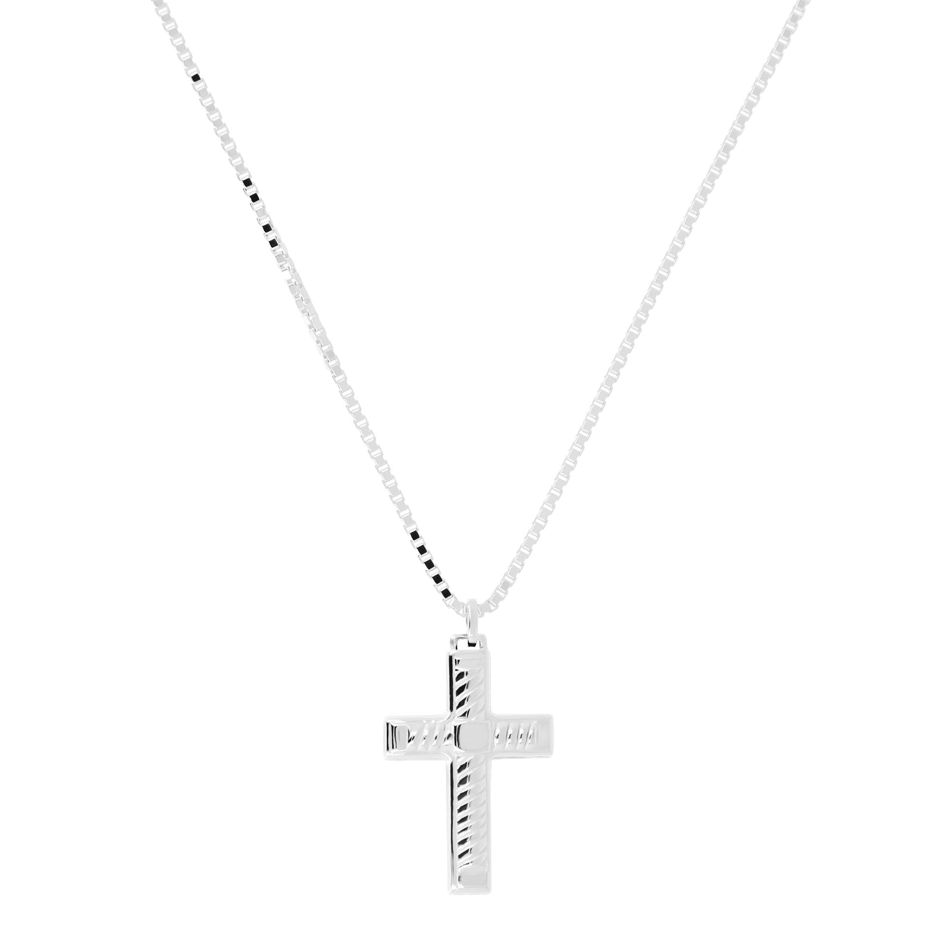 Italian Sterling Silver Unisex Braided Cross Pendant with Box Chain