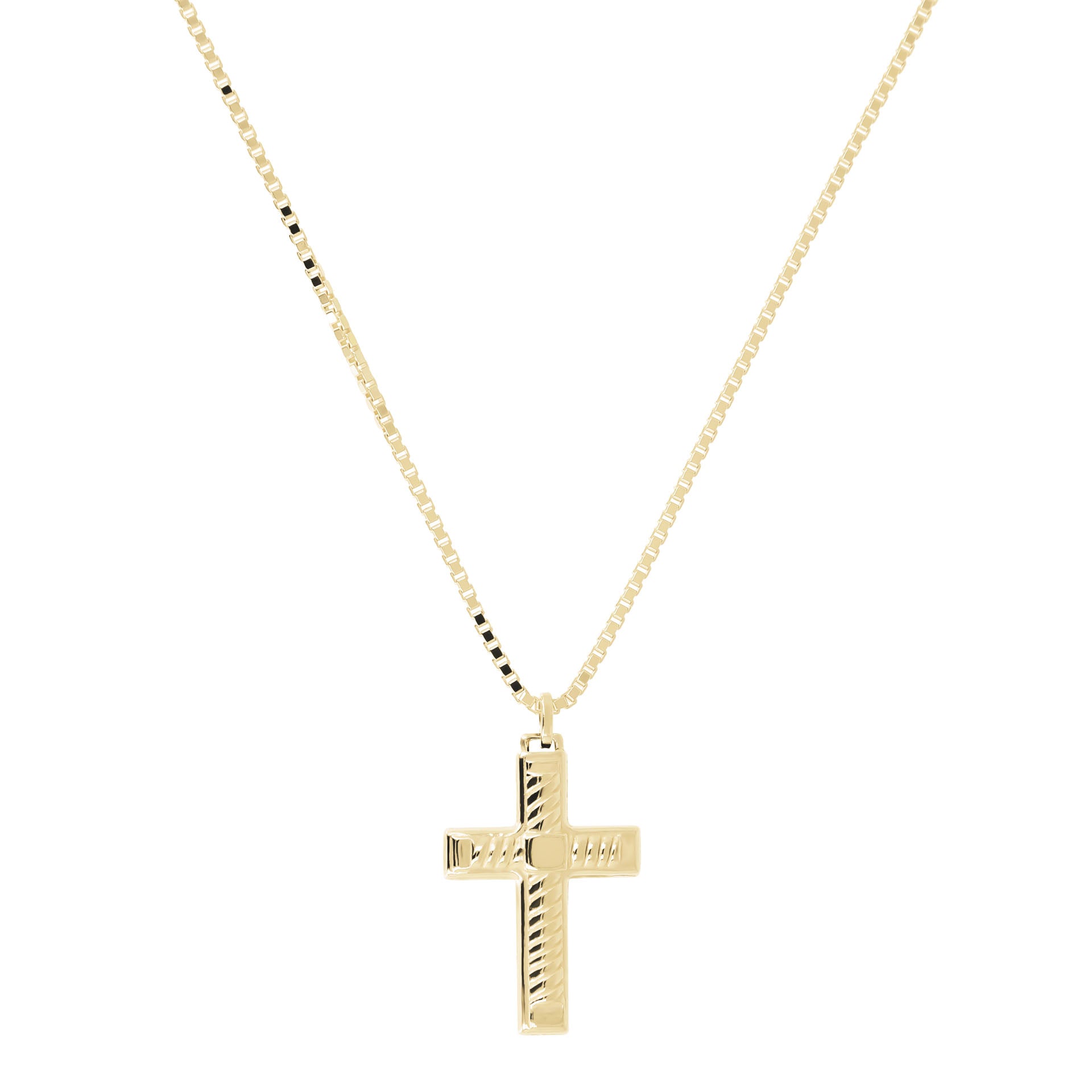 This beautiful high polished and pattern cross pendant is crafted in Italy and is an understated piece, wear as a symbol of faith or just for its beauty. Available in Sterling Silver or Yellow-Gold Plate.