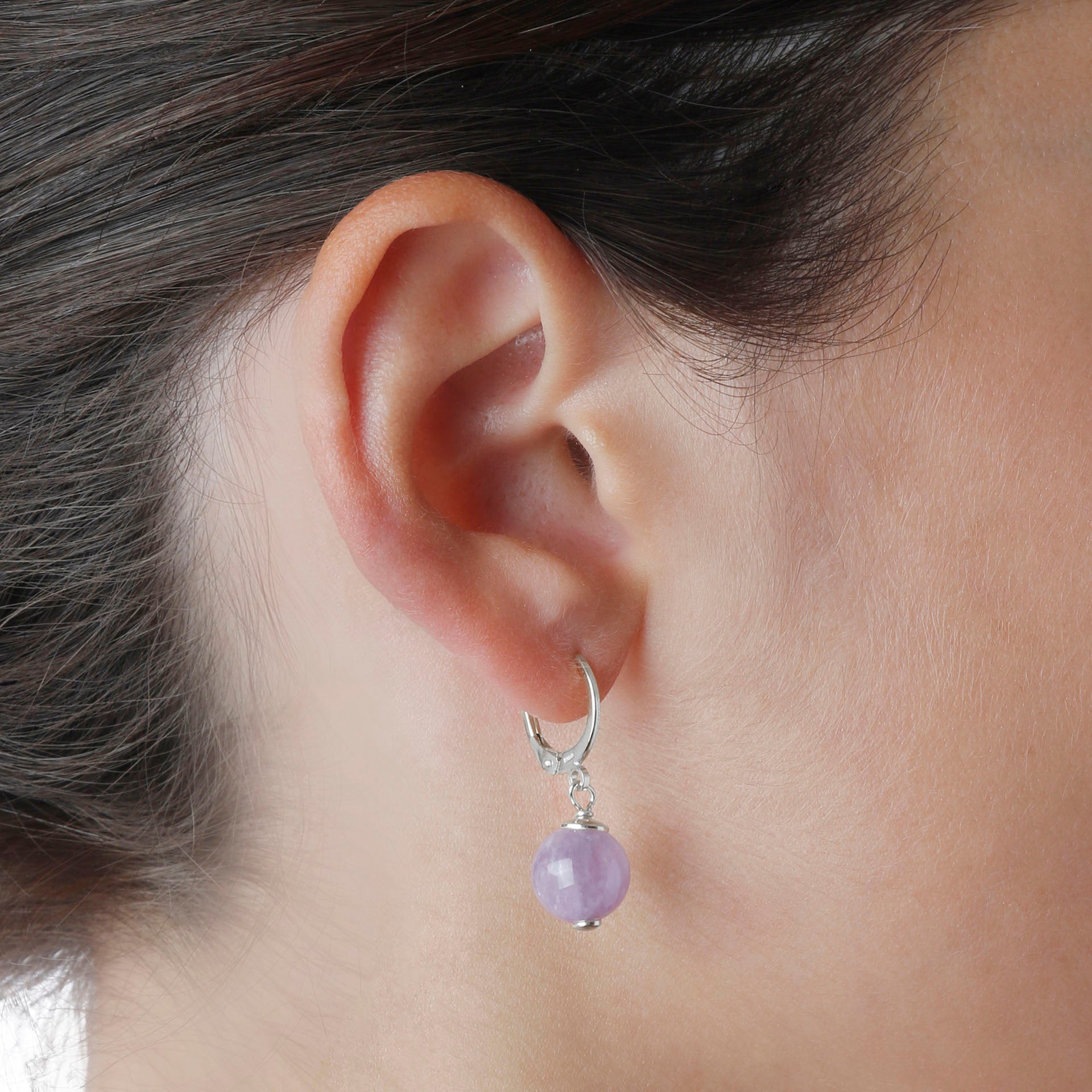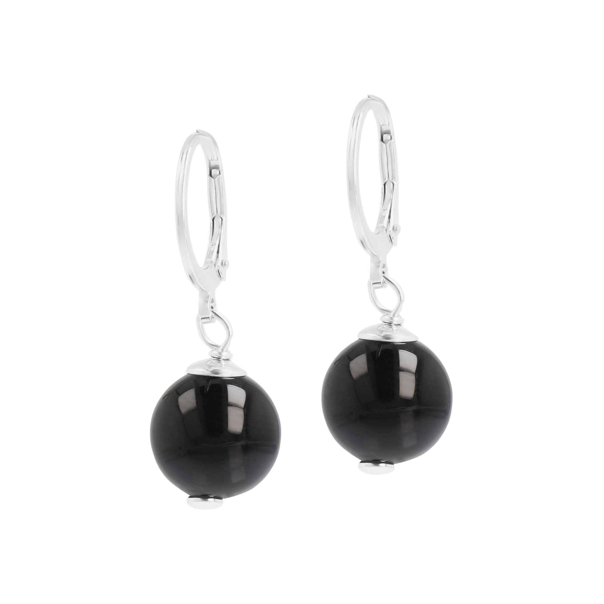 Italian Sterling Silver Leverback Gemstone 10 mm Beaded Earrings