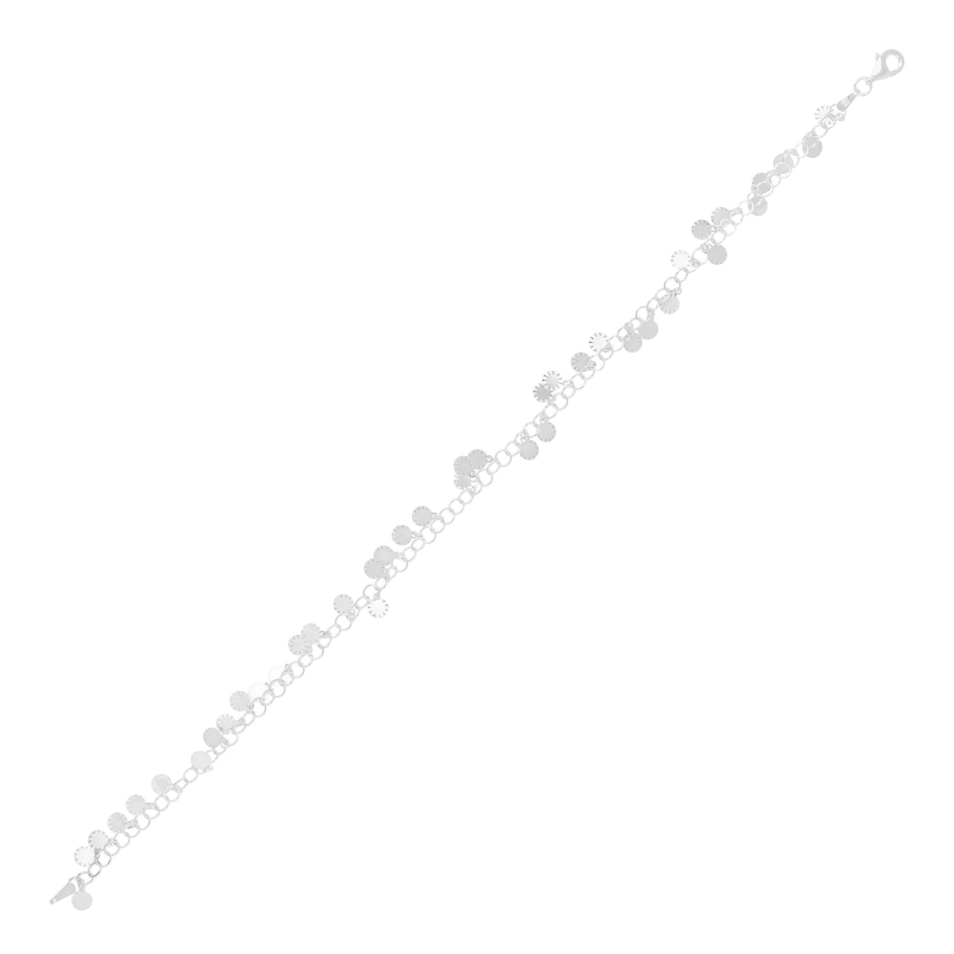 Italian Sterling Silver Rolo Ankle Bracelet with Diamond-Cut Disks