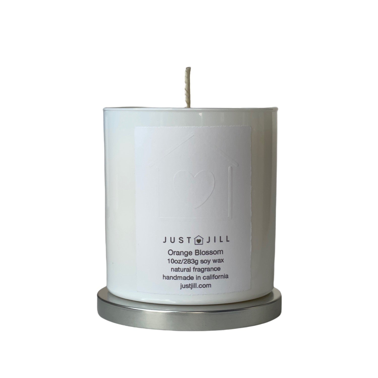 Just Jill candles are made-to-order using an all-natural clean-burning proprietary vegetable (soy) wax and use a cotton wick. Soy candles burn cleaner and longer than traditional paraffin wax candles, so while each candle is 10 oz. in size, you can expect approximately 75 hours of fragrance and candlelight.