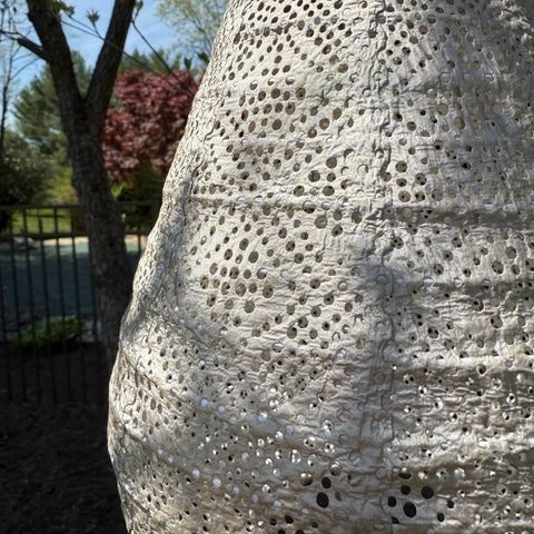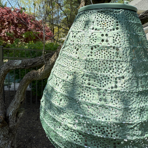 These lanterns are made from Tyvek, a material that looks and feels like paper but is incredibly durable, water-resistant, and tear-proof. It’s tough enough to withstand the elements, even if left outside all year long. You’ll often find Tyvek used in home construction as house wrap, where it helps protect buildings from air and moisture damage.