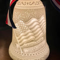 Made from porcelain, these bell-shaped ornaments are not just decorations—they're glowing works of art. This Porcelain Light features the Statue of Liberty, 250th Anniversary and the American Flag as part of the design.