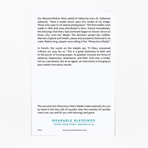 - This necklace comes on an inspirational card with the story of the Miraculous Medal