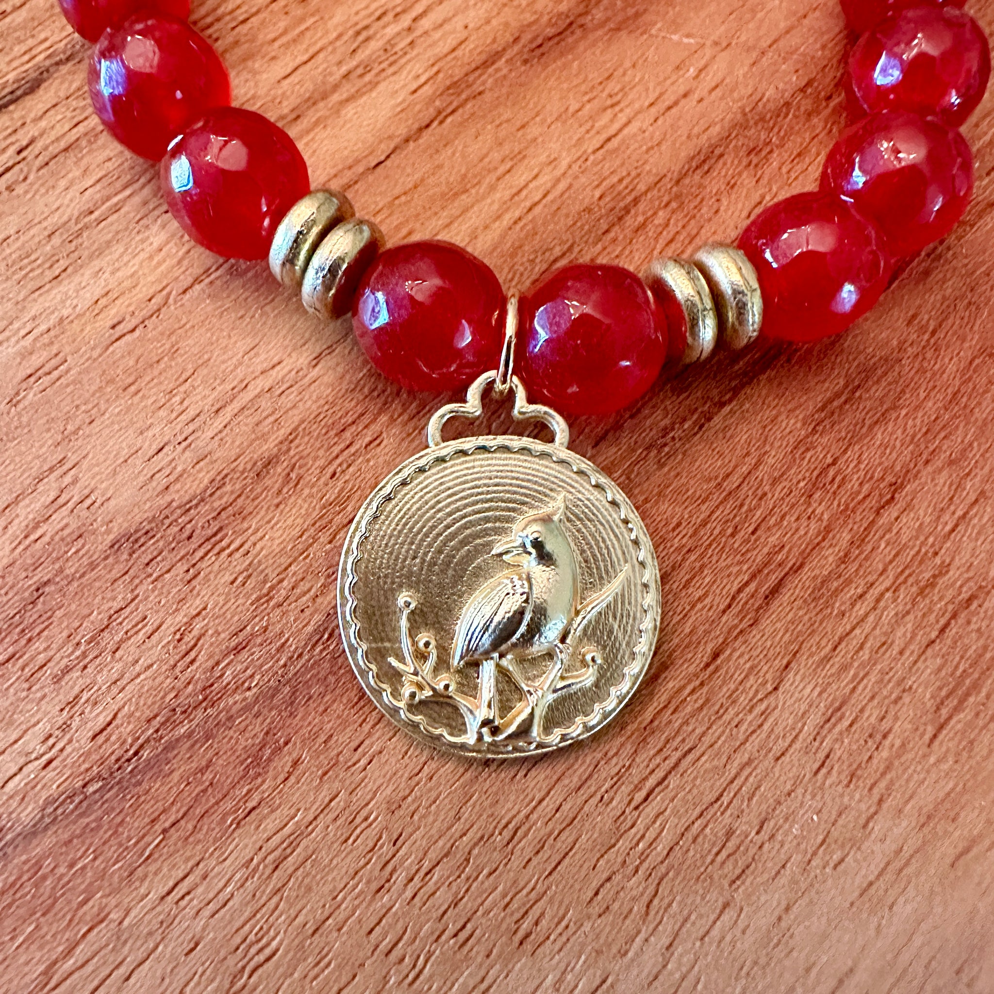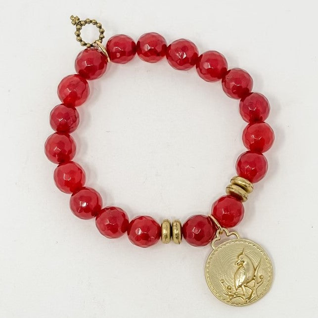 PowerBeads by jen Petites offer a smaller bead for all of the fans of this brand.  This beautiful 10mm Faceted Red Jade bracelet promotes prosperity, health and long life.  The cardinal is a daily reminder of your angels that are watching over you every day.  When you see a cardinal, it's a God wink that you are loved and protected by your angels.