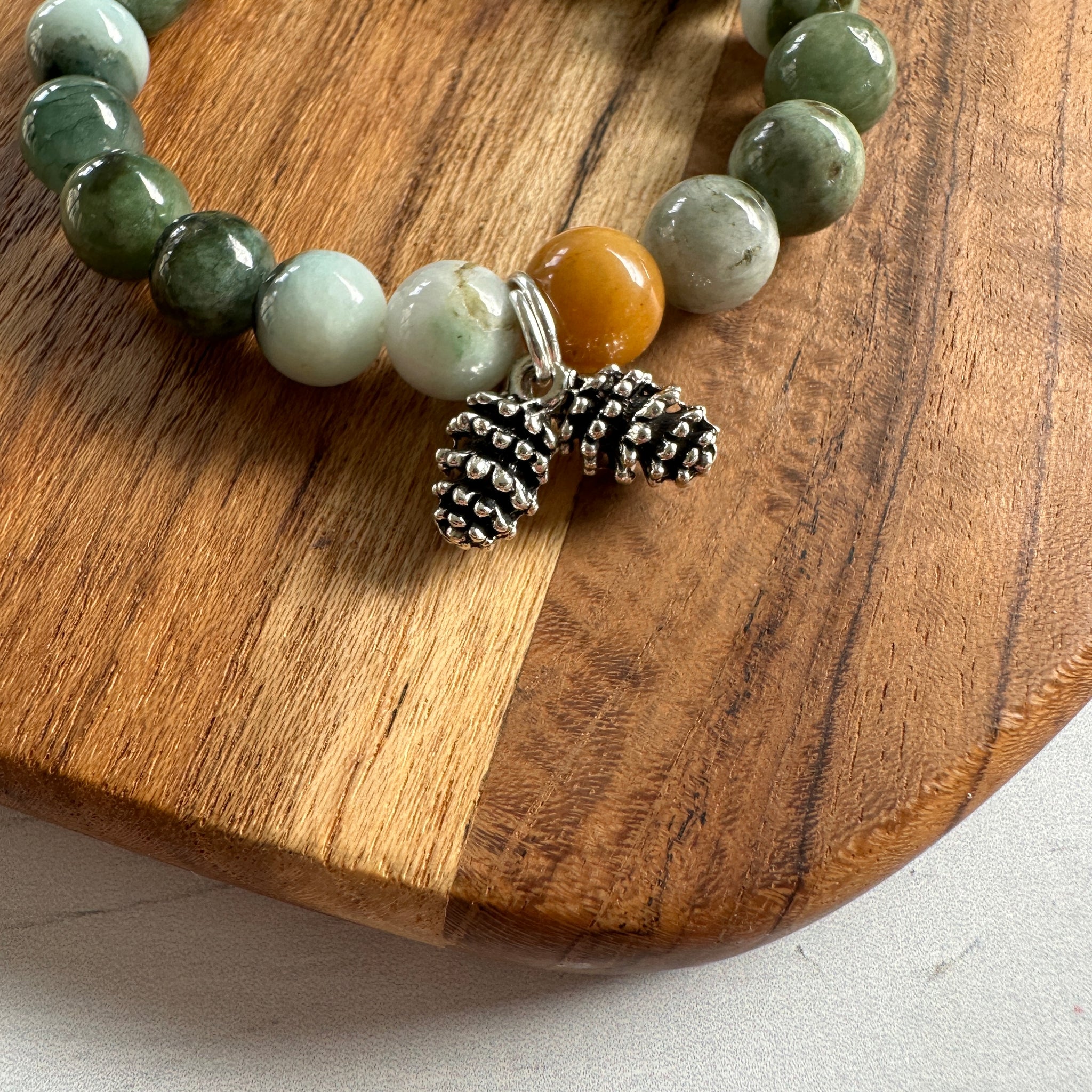 PowerBeads by jen Petites Juniper Jade with Silvertone Pinecone Duo