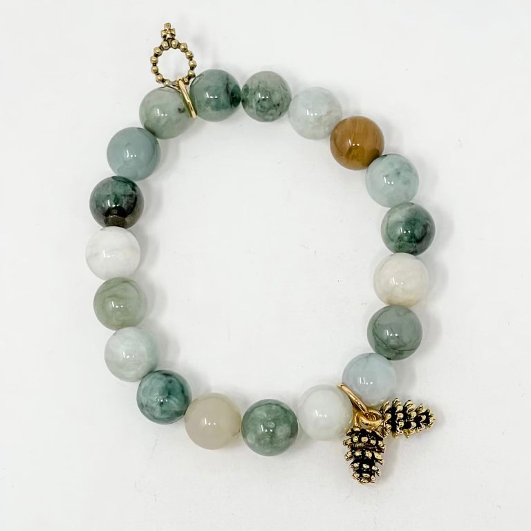 PowerBeads by jen Petites Juniper Jade Bracelet with Goldtone Pinecone Duo