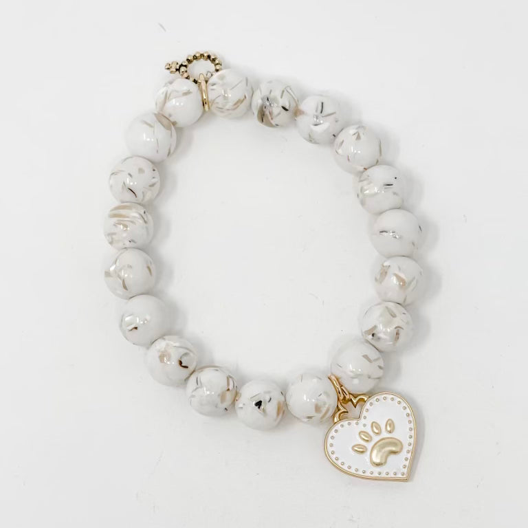 Love the color of the mosaic gold quartz agate beads. It’s a beautiful bracelet and a must have for animal lovers! The heart/paw print charm is so cute too (=