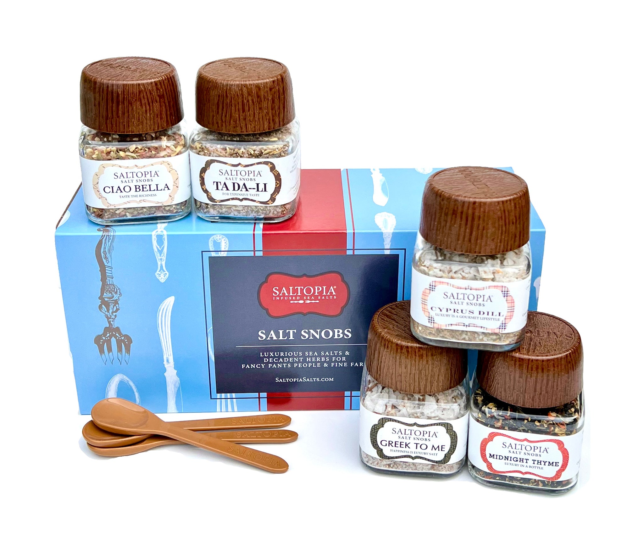 SALTOPIA's "SALT SNOBS" line was created for the people who know what they want in their fine fare. No usage directions are required for enthusiasts.