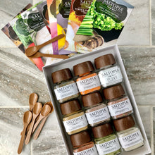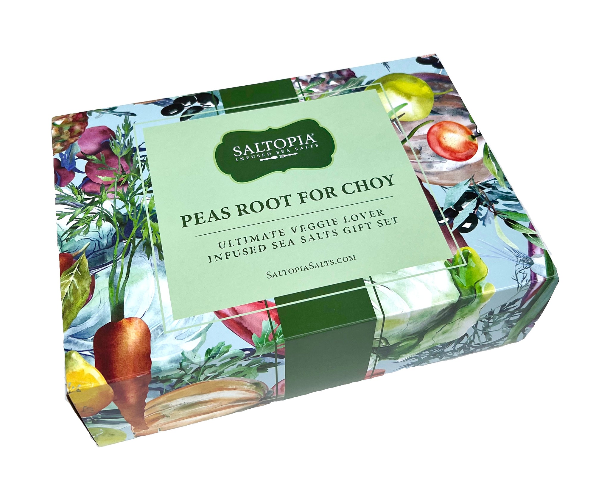 For the LOVE of veggies and much more - this set offers nearly 2 pounds of abundantly pure flavors! This gorgeous collection of (9) nine 3.4oz jars of SALTOPIA Infused Sea Salts includes our very best for vegetables plus more! The recipes feature ideas for everything from vinaigrette dressings to hearty vegetable soups! The set is beautifully gift boxed, immediately tantalizing the taste buds.