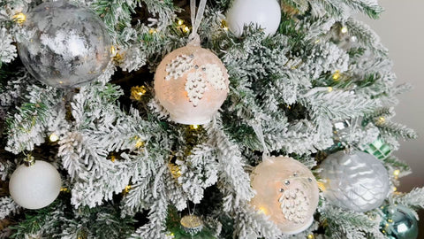 There’s something so inviting about a soft, twinkling glow on the tree. These frosted glass pinecone ornaments add just the right touch.