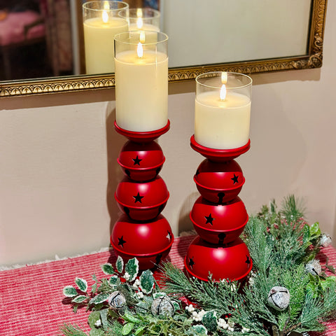 Bring a touch of festive cheer to your home with our Set of 2 Jingle Bell Candle Holders!
